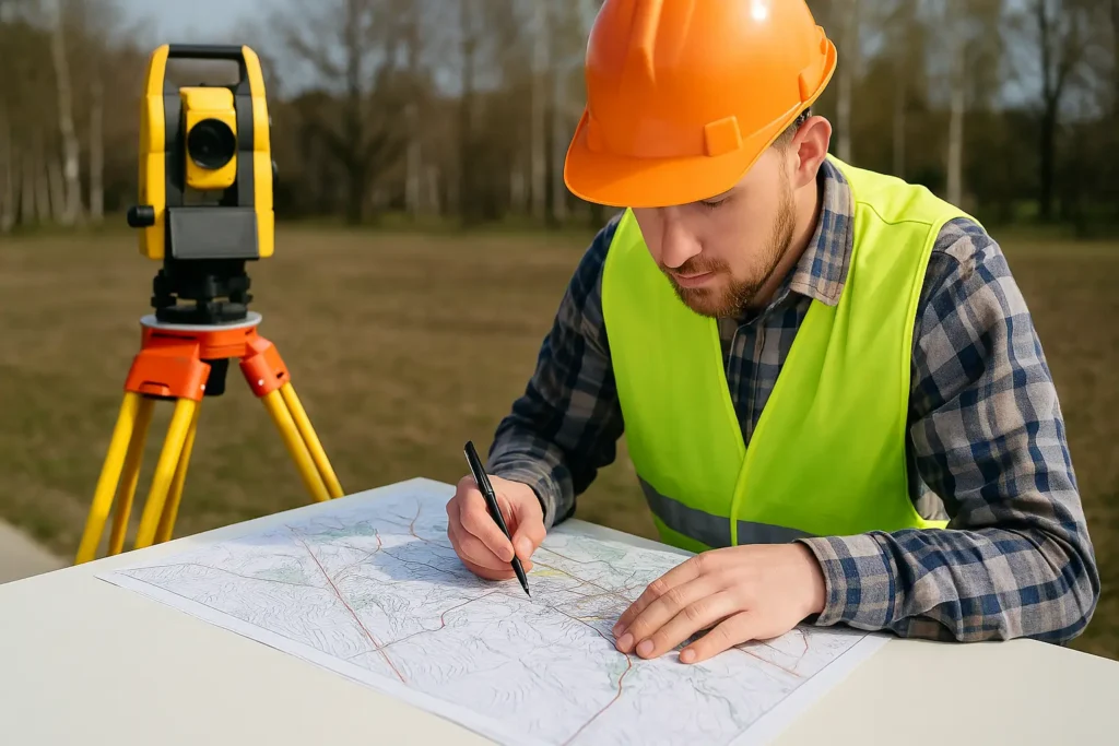 Oferujemy kompleksowe usługi geodezyjne: podziały działek, mapy do celów projektowych, inwentaryzacje powykonawcze i obsługę inwestycji.